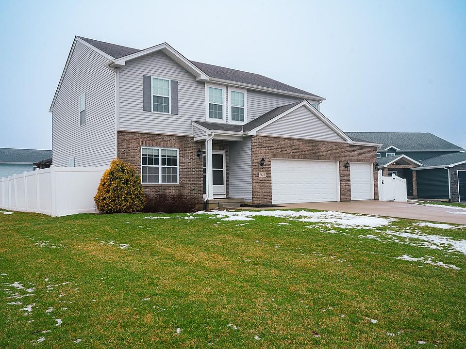 This stunning home is sitting proud & pretty on a corner lot, offering 2,563 square feet of living space. With 3 bedrooms, 2 1/2 baths, a loft, full basement, and a three-car garage. As you step inside, you are greeted by a grand foyer and a versatile space that is perfect for a home office, dining area, or living room. The open concept design seamlessly connects the great room to the spacious eat-in kitchen, which boasts an abundance of cabinets and quartz countertops. All appliances are included, making this kitchen a chef's dream. The large sunlit dinette and island provide additional seating and storage, and a pantry offers even more convenience.The master suite is a true retreat, featuring a spacious bedroom, a spacious bathroom, a linen closet, and an impressive walk-in closet. The fenced-in yard provides privacy and security. The spacious patio is ideal for outdoor entertaining, and the gorgeous brick paved walkway adds a touch of elegance to the backyard.