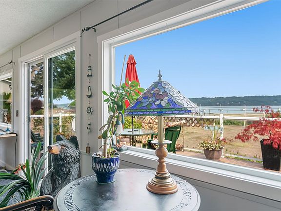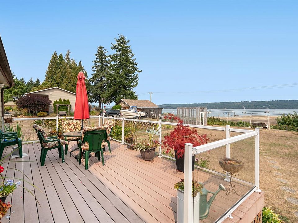 Discover West Coast living at its finest in this beautifully maintained 2-bedroom, 2-bathroom home on a .46-acre ocean-view property in the seaside community of Fanny Bay. Overlooking Baynes Sound and Denman Island, the residence offers vaulted ceilings in the living, dining, family, and kitchen areas, creating a bright, spacious feel that rivals a detached home. The kitchen features two skylights for natural light, while the primary bedroom includes a private 4-piece ensuite. A propane fireplace adds cozy comfort year-round. Step onto the ocean-side deck to enjoy peaceful mornings or spectacular sunsets, surrounded by ever-changing coastal scenery. A 24x30 double garage/workshop, wired with 110V and 220V, is ideal for hobbies, storage, or projects. Situated on a quiet no-through road, this property offers privacy, tranquility, and a welcoming community atmosphere—all within easy reach of amenities in Courtenay and Qualicum Beach. A rare opportunity not to be missed.