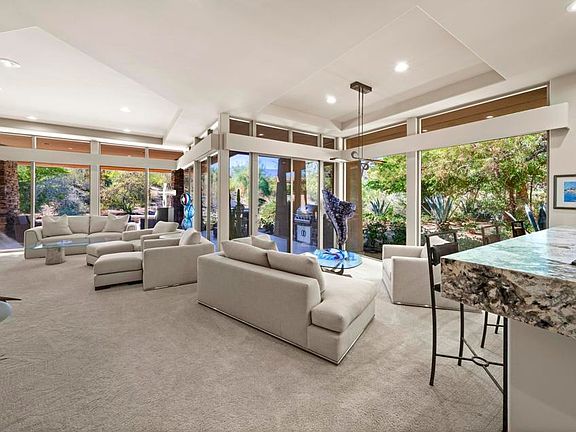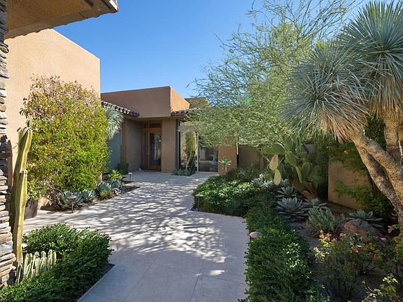 A welcoming desert retreat situated on one of the most private home sites in The Reserve! Walls of glass transform this home into bright, sunlit and open living spaces throughout. The magnificent beauty of dramatic mountains, sunsets and desert landscape are captured in every direction from this serene home and the extended patio, all sited on a waterway with a gentle waterfall. The gourmet kitchen is light and open with updated cabinetry and countertops and easy access to dining, patios and to the outdoor BBQ and fire pit. The master suite has been enlarged to provide a separate office overlooking the gardens and waterway. Your guests will find great comfort in either a suite within the main house or a detached guest suite with private access from the entry courtyard. This is a dream home with close proximity to the world class amenities of The Reserve Club.