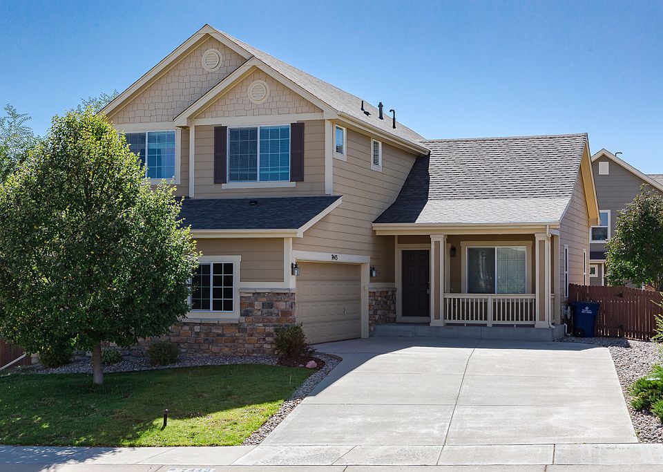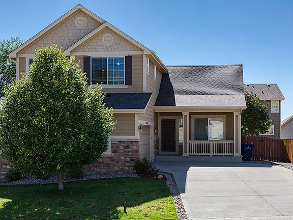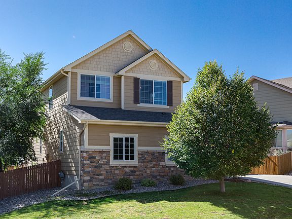 Delightful two-story home in the Cross Creek at Mesa Ridge neighborhood. This home has a great floor plan with a lot of windows that flood this home with SUNSHINE. The spacious living room highlights VAULTED CEILING, built-in shelves, and a GAS FIREPLACE. Adjoining dining room has sliding glass doors that take you to the LARGE STONE PATIO AND SPACIOUS BACKYARD. The kitchen encompasses plenty of cabinet and counter space, a center KITCHEN ISLAND, a large PANTRY, and STAINLESS STEEL APPLIANCES. The main level also contains an ample-sized half bathroom and functional laundry room with cabinets for storage. Upstairs you will find an extensive master bedroom with VAULTED CEILING. The ENSUITE MASTER 5 PIECE BATHROOM has a double sink vanity, OVAL SOAKING TUB! Walk-in shower, and a SPACIOUS WALK IN CLOSET. Two more upstairs size-able bedrooms with big windows, that allow for A LOT OF NATURAL LIGHT. Second floor hall full bathroom adorned with decorative tile. Partial basement big enough for your expansion. ROUGH-IN for easy basement bathroom and a crawl space for EXTRA STORAGE. OVERSIZED 644 square feet two-car garage has plenty of room for a WORKSHOP AREA or all your TOYS. Perfect sized backyard for play and pets. Large patio for family bbq and lounging. Short drive to Fort Carson and the Airport. Conveniently location close to plenty of shopping and dining options. Your search for a great home is over. Make your appointment today.