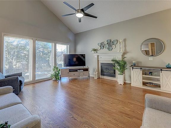 You won't want to miss this well maintained half duplex and maintenance provided 2 Story home! Prime cul de sac location close to highways, amenities & De Soto Schools! Low monthly HOA fees. Original owners. Upgrades galore with a large and private treed backyard. Kitchen & Dining Rm remodel '20. Beautiful quartz countertop, new backsplash, fresh white cabinets & farmhouse sink. Hardwoods added to entire main floor '22, new paint int & ext, new light fixtures, dishwasher, garbage disposal & new garage door opener/keypad. Exercise enthusiast? Check out the exercise rm w/ equipment that is staying, yoga wall, mirrored wall & swiss tracks floor! The floor is so tough that you can drop a weight & it won't crack - Nascar uses this floor!! Totally private backyard with loads of wildlife and an open vaulted Great Rm with fireplace & lots of natural light. Great neighborhood, friendly neighbors, community parks and trails with easy access for kids to walk/commute to schools. Great for all ages. Pet friendly community with dog waste stations & trails. The large unfinished basement w/ egress window provides an abundance of storage or it can easily be finished to create more space. You will love this home and everything that it has to offer! All that you have to do is MOVE RIGHT IN! Investors - one or both half duplexes would make an amazing investment for rental properties too!