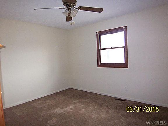 Neat,clean and ready to move in. 4 bdrm. home in great condition, all new interior paint, modern eat-in kitchen with corian countertop, new flooring. Full wide open basement with newly painted walls and floor and up to date mechanics. Vinyl sided ranch with doublewide blacktop driveway plus 1.5 car garage. Two auxiliary buildings on half acre country lot. City water and in Oakfield school district. 4th bdrm. has laundry hookup for 1st flr.laundry.