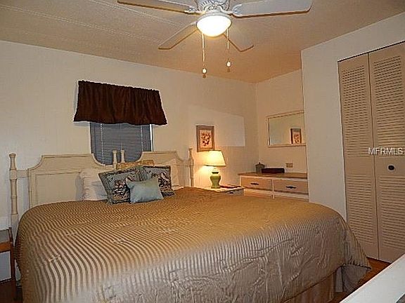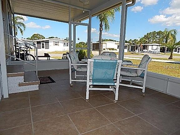 This absolutely PRISTINE, 14'' wide home is being sold TURN KEY FURNISHED! Once you enter, you will experience the open feeling for the ceilings are 7 1/2 FEET TALL!!! The light and bright living room features 6 windows. This home has a huge eat-in kitchen, two good sized bedrooms, plus a beautiful, recently remodeled bathroom featuring a NEW oversized shower, toilet, and vanity. THIS HOME IS IN A-1 CONDITION! Here are just some of the updates that the sellers have done in the past 3 years: All NEW laminate floors over NEW OSB board; NEW humidistat, NEW exterior railings, NEW lanai with tile, NEW 10'' x 7'' shed with NEW washer/dryer hookups, 2 NEW electrical boxes, complete roof over with downspouts and NEW gutters, NEW exterior and interior paint, NEW refrigerator, updated stove, all NEW exterior awnings, NEW skirting, NEW main shutoff, and more! Village at Holiday Lake is an active community where there is something for everyone. Swimming, GULF ACCESS boat ramp, fishing pier, tennis, wood working, shuffleboard, and more... Need room to store your boat or RV? No problem! Village of Holiday Lake has a specified area within the community for all of your toys. Lawn maintenance is included in the low monthly fee. Come live the Florida lifestyle. DON''T DELAY - CALL TODAY!
