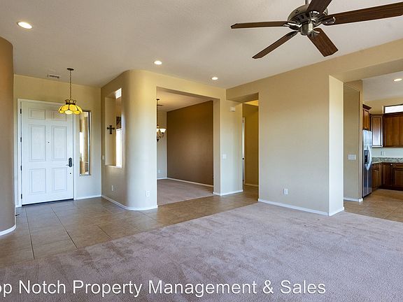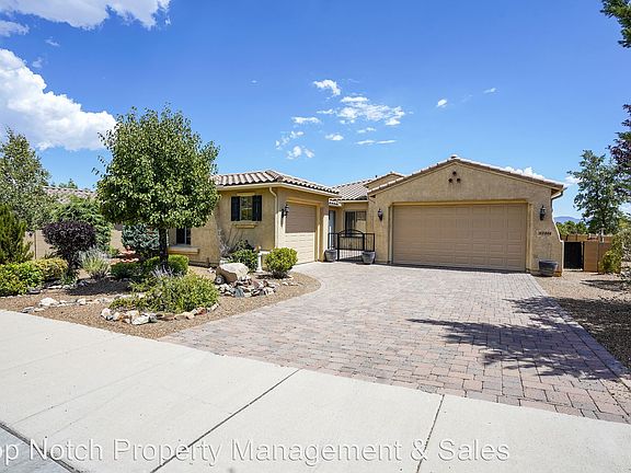 APPLICATION PENDING - You will love this 2533 sq ft home with many upgrades in Stone Ridge. Nice front courtyard welcomes you as you enter the formal tiled entry. Large living room with lots of windows, fireplace and ceiling fan. Formal dining area. Large gourmet kitchen with island/breakfast bar, granite counter tops, all appliances, tile floor, overlooking eat in kitchen area. Private exit to covered patio and backyard with views! Split 2 bedrooms with den, full bath with tub. 1/2 bath in hall for guests. Large Master in suite with ceiling fan, dual vanity areas, separate tub and shower, tile floors and large walk in shower. 2 car garage with opener or 3rd bay - Bonus/flex room. Stone Ridge is a golfing community featuring pro shop, dining and club house with swimming pools, tennis, meeting rooms, gym, etc. See link for more information http www.stoneridgeaz.com/ Cooling: A/C and Ceiling fans Heat: Central Gas Appliances: Refrigerator, Disposal, Dishwasher, Gas Stove, Built in Microwave, washer and dryer Tenant Pays all Utilities APS - Electric Unisource - Gas Town of Prescott Valley - Water/Sewer Trash Included in rent Terms: Year lease No Smoking Pets Negotiable No college students Stone Ridge - CCR's will apply Please call Top Notch for a private viewing of this great home at 928-772-4801 Information is deemed reliable but not guaranteed. (RLNE4263888)
