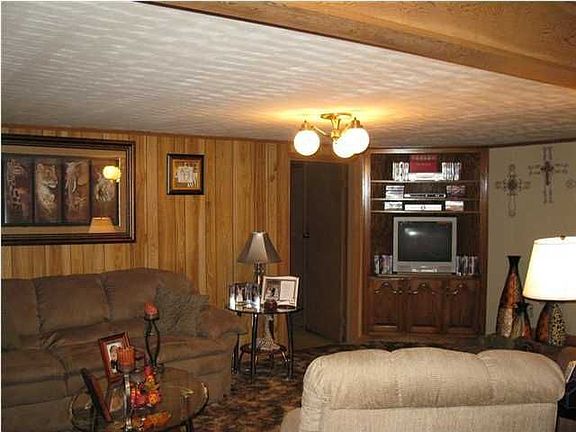 This home has a large Living room and dining area with fireplace. 3 bedrooms, 1 bath. Nice yard with storm shelter, picnic area with tables, and a storage building. Central H_C and carport. Must See...