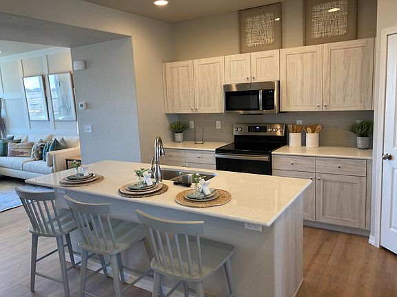 This is a lovely 2,300 square foot townhouse on the NE side of Colorado Springs. Located just east of Woodmen Road and Powers Blvd, this townhouse boasts 3 bedroom, 4 baths (2 full/2 half), a 2 car attached garage and a covered elevated patio outside the dinning room. Granite counter tops and stainless steel appliances compliment the open kitchen with large island. Often overlooked, but not here this property sports a walk in laundry room just outside the bedroom doors, complete with a Whirlpool washer and dryer front loader. Call today to secure this 2021 built townhome today! Available starting on Feb. 21, 2023. **Photos of similar unit. Finishes and paint selections will vary. Unit comes unfurnished Min. 15 months lease. Tenant covers: utilities, trash, internet, cable.