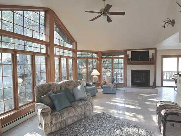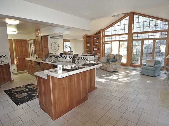 Privacy plus! Minutes from town in this tucked away updated home. Custom cherry kitchen, lighted cabinets, tile floor/counters, wall of windows in family room, adjacent 7.5 acres w/heated 2600 sq ft heated also for sale, horses ok-great building site