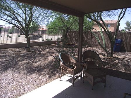 Awesome, quiet neighborhood! Easy Desert Landscape with flowering bushes. Shaded backyard with view fence to common area. No Backyard neighbors! This home has a large living area with huge eat-in kitchen and breakfast bar (includes refrigerator) Split bedroom floor plan with an awesome ''den'' area! Interior paint was just done. Shed in backyard included.Don't Miss out on this wonderful home!