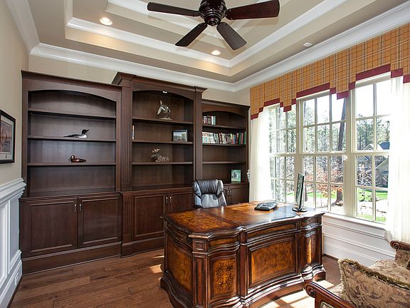 MOTIVATED SELLER! Beautiful private home with an open floorpan & 3 bedrooms on the main floor! Wood floors, extensive molding and built ins throughout! Private master suite & two other bedrooms w/ full private baths for each on opposite side of home. Large bonus room, bedroom w/ full bath and large walk in unfinished attic storage on 2nd floor . Full brick/stone exterior, large private wooded lot, professionally landscaped with inviting outdoor patio & fireplace. Very deep 3 car garage.
