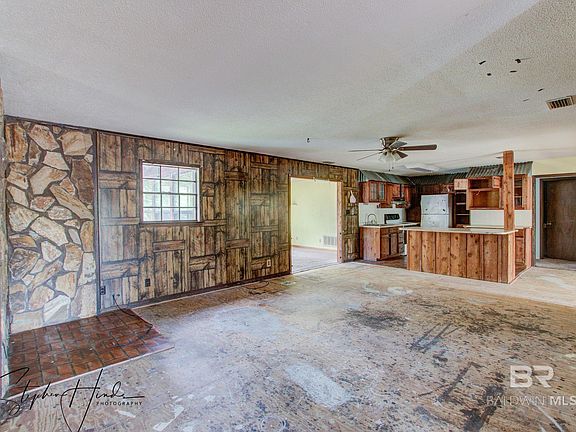 Homesteaders Dream!! Come and check out this fixer upper on 10 acres! This 4 bedroom 2 bath home is located just outside of Saraland! This property includes barn with half dirt half poured convert floor with a loft, that is great for farm animals and storage, a Metal roof from 2018, AC 2020, and water heater 2020! Please be mindful when driving to this property the driveway is grave and is uneven in places. Please be careful when walking around the home due to barbwire fence that is down. Please give your favorite agent a call to come and check out this home! Home is being sold AS IS. Please see agent remarks.