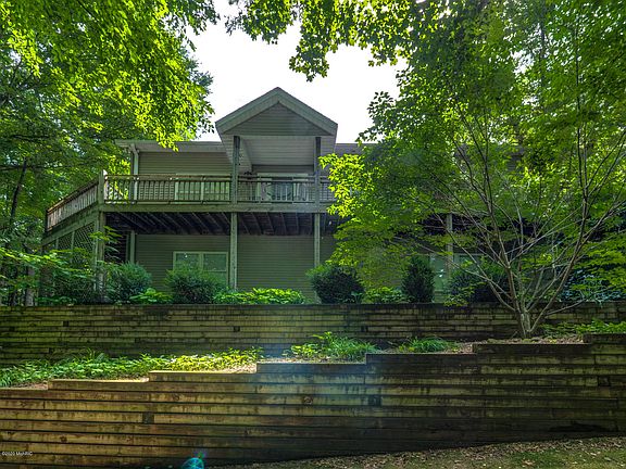 Unique lakefront home & property on Mill Pond Lake, w/a channel that takes you to 165 acre all-sports Fish Lake. The tree lined driveway leads you through a beautifully landscaped & manicured yard to the perfect lake home surrounded by a wrap around deck that overlooks the property & lake. This well built (2x6 construction& quality Anderson windows) home features a great room w/vaulted ceiling, a wall of windows & stunning lake views. The ML has a spacious living room, dining area & bright kitchen w/center island & skylight; the master bedroom w/vaulted ceiling, lg beautiful bathroom, & MF laundry. The LL/WO has a family room overlooking the lake, 2 spacious bedrooms, both w/walk in closets & great views; a full bath w/a soaking tub & shower. 2 car att garage, 40x64 Pole barn, & crab shack by the lake. Private dock.