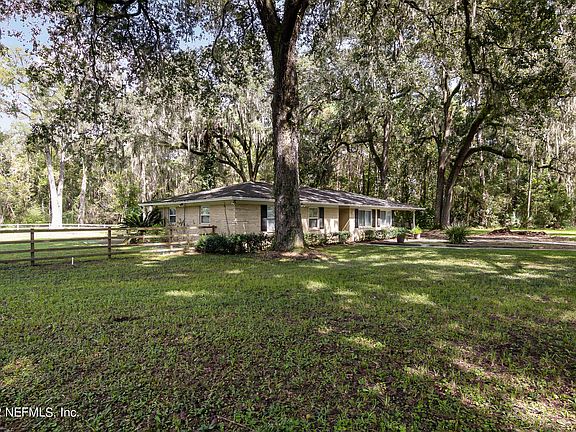 Here's an opportunity to own a private oasis in the heart of Jacksonville on 2.5 acres! Upon entering the home, the beautifully updated interior will jump out at you. The kitchen features granite countertops, stainless steel appliances, custom tile backsplash, and a kitchen island with a range hood. Adjacent to the kitchen is the large living room with a wood-burning fireplace, ceramic tile floors, and expansive views of the yard. The master bedroom comes with new laminate wood flooring, backyard views, custom tile floors in the master bathroom and a jetted tub. Enjoy spending time outside under the majestic oak trees that embrace the property, fish from your private pond, and find space for any type of animal. Included in the property is a brand new 2 car garage perfect for storing all of your outdoor toys.