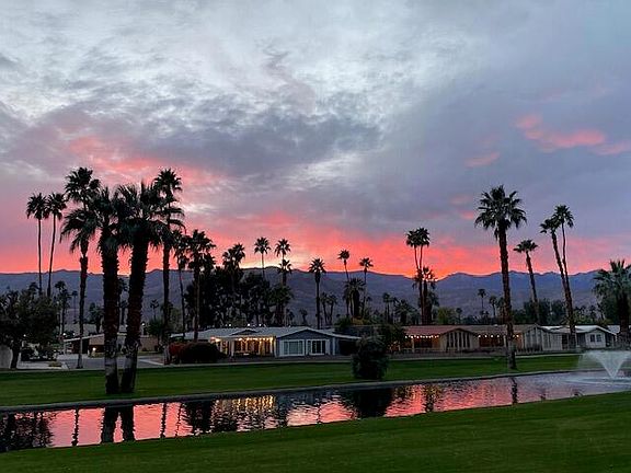This custom 2000+sqft Silvercrest home ticks all the boxes! Overlooking the golf course, the lake,fountains & gorgeous southern views of the Santa Rosa Mountains, the home has dry wall,cathedral ceilings and all the amenities you'd love in a 55+community: Attached 2-car garage wit built-in cabinets, 2 bedrooms w/ensuites(one with tub & shower) plus a 3rd br and adjacent bathroom, and an extra-large laundry room with built-in computer station. The primary br. has its own patio doors, 2-person walk-in closet & double sinks in the bath. The permanent foundation eases financing. Kitchen has newer quartz counters, recessed lighting & a lovely eating area with bay windows overlooking the golf course & lake; sliding doors lead directly to the patio for convenient Alfresco dining. Views extend thru the large living room with fireplace & dining area with dual-pane windows and custom plantation shutters. Most furnishings, patio furniture, BBQ and golf cart are included with the home. Enjoy the bird life, the turtles sunning themselves and the beautiful mountains as the light changes thru the day from sunrise to sunset. The 500-home community with HOA fee under $400 includes free golf for the owners on a well-maintained 18-hole,par3,PGA-accredited course, pickleball,clubhouse,3pools & activities. Close to El Paseo, McCallum Theatre & nearby Eisenhower Hosp. Whether you're a keen golfer or just love the views, this place will amaze and keep you entertained. Come take a look!
