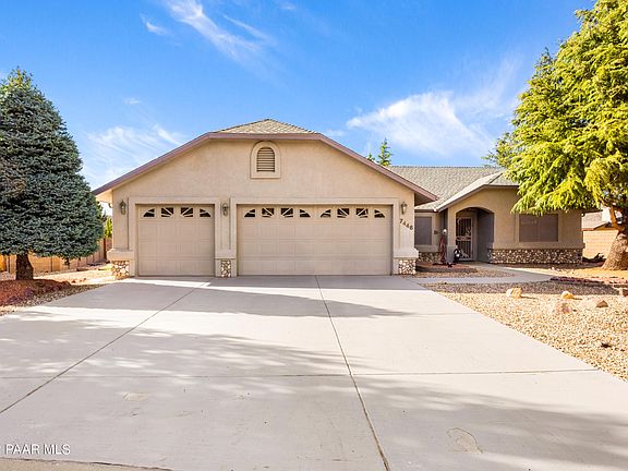 Fabulous opportunity in Desirable Viewpoint Subdivision of Prescott Valley....Featuring a 1923 square foot Ranch Style Home on a Quiet Culdesac, on a Huge/Superior Landscaped .32 Acre Lot with Excellent Curb Appeal starting with Stacked Stone Accents!! Seller is giving a $20,000 Cosmetic Allowance with Full Price Offer! Home has 3Bedrooms/2Bathrooms/3CarGarage + Den, Open/Split Floor Plan, GREAT ROOM Concept, Vaulted Ceilings, Pot Shelves, Ceiling Fans, Solar Tubes, Gas Fireplace, Honey Comb Shades, & 16'' Tile/Wood Laminate/Carpet for flooring. Kitchen is nicely appointed with Blonde Oak Cabinetry, GRANITE Countertops, Quality White Appliances, Breakfast Bar, & Eat in Kitchen area w/Functional Bay Window. Master is Spacious, has Dual Sinks, Jetted Tub, Separate Shower, Large Walk in Closet & has Direct Access to Huge/Enclosed Rear Patio. Additional features include NEW ROOF, Hot Water Heater w/Recirc, Large Laundry, Fenced Backyard, Checkerboard Commercial style flooring in 3Car Garage, Storage Cabinetry, Utility Sink, & Security Screen Door. Viewpoint HOA dues of $69/yr & is located close to All Services, Hospital, Entertainment, & Shopping!!!