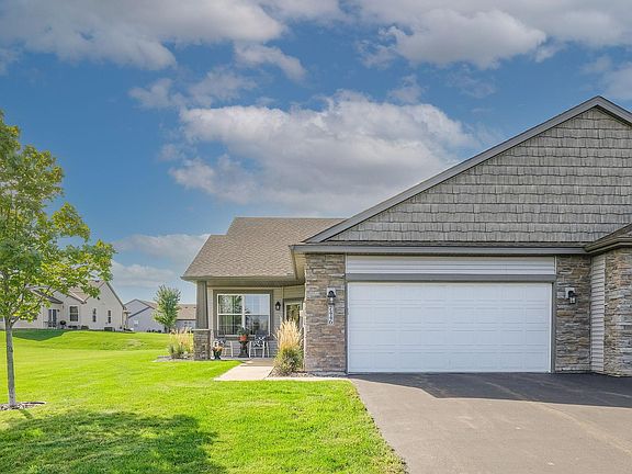 Welcome to this beautiful 1-level-living townhome in Otsego! This 2-bedroom 2-bathroom home will blow you away with its open concept floor plan, beautiful wood floors, and privacy from the protected wetlands across the street. As you walk inside you will be greeted with a spacious foyer that leads you into the open concept kitchen, dining room, and living room. The kitchen is equipped with matching stainless-steel appliances, a large center island, and a window that fills the room with natural light. As you continue through the home you find a spacious bedroom, a four-season porch that leads to the back patio, a full bathroom, a large laundry room, and the owner's suite. The owner's suite has a ¾ private bathroom with tile floors and a walk-in closet. This property is located on a quiet dead-end street and is just minutes away from multiple restaurants and shopping spots in Albertville. Don't miss your chance to call this beautiful house your home!