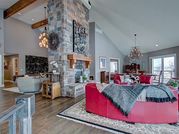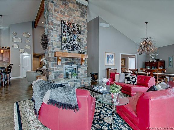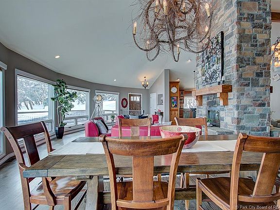 Entertainers' Dream. The spacious kitchen provides everything needed for entertaining from spacious counter-tops, to a double oven, 6-burner range, twin dishwashers, two sinks and a wine fridge. A two sided wood burning fireplace is the centerpiece of the room providing a break between sitting/gathering areas. Windows wrap one side of the room looking out over the valley and adjacent open-space. A large deck next to a recirculating stream wraps the home outside. Your friends have plenty of room to park as the home sits atop a flat cul-de-sac next to your flat heated driveway and front walk. The home features 3 bedrooms including the master and an office on the open floor plan Main level. A fourth bedroom with ensuite bath plus a family room with wet bar, powder room and a den downstairs.