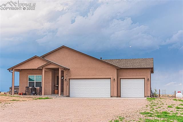 Don't miss the opportunity for country living in this beautiful bright and open ranch style home, fully finished basement on 2.75 acres of land, in a cul-de-sac just south of Fort Carson. Conveniently located close to Colorado Springs, Pueblo, military installations, I-25, shopping, restaurants, parks and schools and entertainment. Featuring stucco exterior, 3 car garage, chicken coop, and chickens can be included! Fenced dog run off of covered patio with mountain views and views of Pikes Peak, plenty of space for agricultural or recreational projects! Open concept kitchen with granite counter tops, dark cabinets, stainless steel appliances, gas range with a large amount of counter space, kitchen counter bar with new pendant lighting which opens to the dining and family room with vaulted ceilings and gas fireplace. The expansive primary suite is light and bright with adjoining 5-piece bath, large free-standing shower, separate soaking tub, large walk in closet and dual sinks with granite counters. 2nd bedroom is located on the main floor with a full bath across the hall. The fully finished basement is the perfect area for entertaining and/or media room with ample space for a crafting area and plenty of extra storage space. This level also has 2 additional bedrooms and a beautifully finished full bathroom. Schedule your showing today!