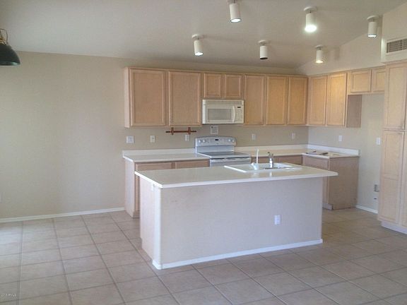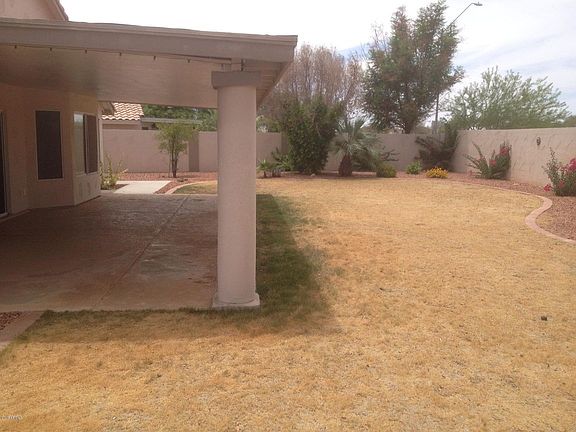 In process of being cleaned up. 16 inch Tile flooring thruout except carpet in 3 bedrooms, neutral colors-open floor plan. Large Den or office with dbl.doors. Big kitchen overlooking the family room, 4 ceiling fans, storage shed, citrus trees, 35ft x 15ft extended back patio facing a large backyard,no 2 stories behind. Garage cabinets! 1/2 of tenants cleaning deposit is refundable if house is left clean and all of security deposit if no damage. $200 per pet deposit is non -refundable for extra wear and tear on the property. Tenant will be responsible for a $75 deductible on any repairs needed after 30 days. Fantastic area and schools here in the Arrowhead area! Double sinks in both baths,sep.tub and shower & walkin closet in master bath. Dual pane windows & bay windows in mst & dining rms