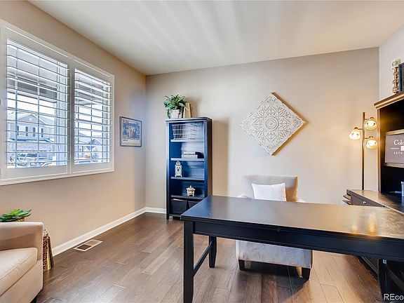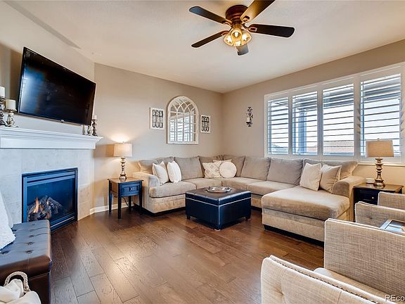 Don't miss the 3D Matterport Tour to virtually walk the home! This beautiful Hemingway floor plan includes the coveted sunroom addition! Upon entry you'll notice hardwood flooring throughout the main level and an office enclosed with french doors. Enjoy cooking in the beautiful kitchen with your double ovens, gas cooktop and spacious island. Dine with family and friends in the sunroom and enjoy the upgrade of plantation shutters on the windows! Just off the sunroom there is a covered extended deck with room for dining and lounging! The upper level boasts a large master suite with 5-piece bath and walk-in closet, 3 additional bedrooms, a full bathroom with double sinks and spacious loft! Downstairs you'll find a custom-finished basement that was just recently done. There is a bedroom, bathroom, living room and recreation area as well as plenty of storage. Enjoy entertaining with your wet bar! From the walk-out basement you can go outside to your extended patio and fenced, private yard! The shed stays! The shed is ideal to keep some of those extra garage items in. Don't miss the concrete steps along the side of the house to make it easier to walk from the front to back. This home is walking distance to the neighborhood pool, tennis courts and both parks! For the outdoor enthusiast you can enjoy the Hidden Mesa open space with trails and mountain biking paths, and it also connects to the Cherry Creek Trail. Welcome home!