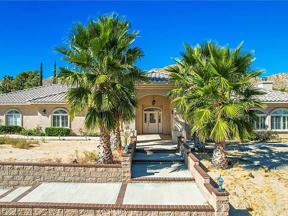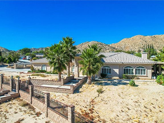 FOR COMP PURPOSES. Welcome to this stunning 5-bedroom, 3-bathroom sanctuary nestled in the Country Club neighborhood of Yucca Valley, where modern comfort meets the serene desert landscape. You will be pleased to know that the solar lease has been paid in full up to the year 2035. As you enter this spacious abode, you are greeted by an inviting secondary living room, boasting stained concrete floors, a cozy gas fireplace, and an elegant bar section—perfect for entertaining and relaxation. The home unfolds into two distinct wings, each with its own charm. On one side, the heart of the home features an open kitchen designed with the culinary enthusiast in mind, complete with ample cabinets, a convenient pantry for storage, and a delightful dining area for hosting memorable meals. Adjacent to the kitchen lies another warm living room, anchored by a second gas fireplace, creating a symphony of spaces for family gatherings. For added convenience, a guest restroom is strategically placed. The luxurious primary bedroom serves as a private retreat. Expansive in size, it boasts a sliding door for direct access to the back patio, inviting the outside in. The ensuite primary bathroom is a spa-like escape, featuring double sinks, a capacious soaking tub nestled in the corner, and a massive shower. Venture to the opposite wing and here you will find four well-appointed bedrooms basking in natural light, accompanied by a third full bathroom, seamlessly servicing the living quarters. Step outside to the backyard oasis, where mature palm trees sway in the breeze and a massive pergola stands proudly atop custom pavers—the quintessential setting for outdoor enjoyment. The vast covered patio, finished in smooth stucco, presents a sheltered area for al fresco dining or lounging. For those warm Yucca Valley days, the large above-ground pool and spa promise a refreshing dip and relaxation. RV owners and car enthusiasts will delight in the extensive driveway, providing hassle-free RV storage and a seamless connection to the street. The side of the garage offers abundant space for additional parking, accommodating your every need. As you behold the property's front vistas, prepare to be captivated by breathtaking views of the city below, framing this residence as a true Yucca Valley jewel. This home is not just a residence; it’s a lifestyle waiting to be cherished. Discover your desert paradise today and embrace the beauty of Yucca Valley living.