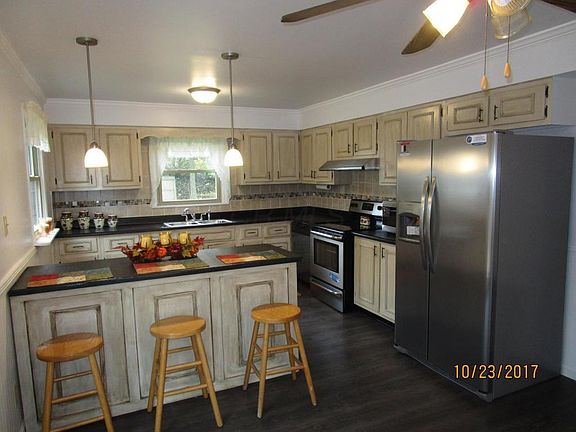 Move in ready home on lovely lot, with mature trees. Gorgeous kitchen with new SS appliances and island seating. Kitchen opens into large dining room with pass thru to living area. Master bedroom has en suite and 3 closets for tons of storage. Upstairs has 2 more bedrooms and spacious foyer with office nook. Gigantic front deck plus rear deck, right off of french doors from kitchen. New flooring. Freshly painted. Attached 2 car garage plus extra detached 16x20 garage. Immediate possession. Must see to appreciate.