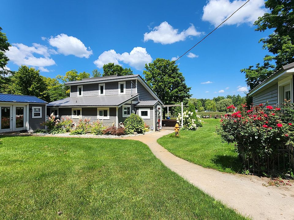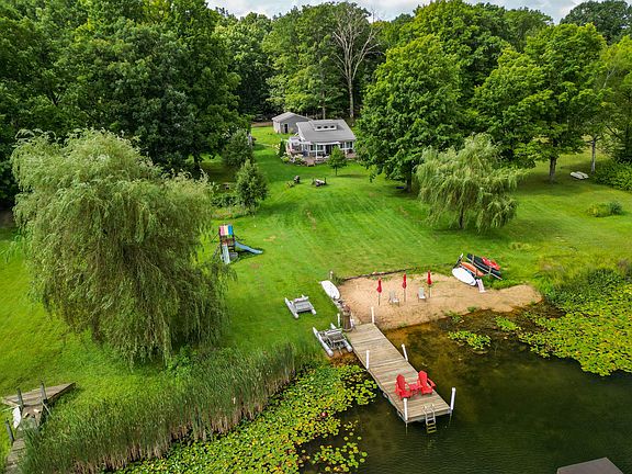 Discover your dream escape at Darlington Lake with this unique real estate offering. Nestled on prime lakefront property, this stunning listing features a one of a kind home! Welcome to your own private beach frontage. The house boasts a warm and inviting ambiance with spacious living areas, large windows flooding the home with natural light, and an open-concept kitchen perfect for entertaining. Enjoy your mornings on the deck, soaking in the serene lake view, or unwind in the evenings by the cozy firepit. Enjoy all the outbuildings and luscious lawn for all your outdoor activities or soak in the hot tub after a fresh snow fall! The dream is now a reality to own your private escape.