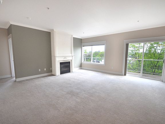 Top floor condo with great views of Mt Hood, St Helens and the Portland city skyline. Features an open floor plan, gas fireplace & spacious balcony. Master bedroom has ensuite bath, walk-in closet and slider to balcony. Laundry in unit. Private 2-car garage included. Pet friendly building! Desirable Johns Landing location, only minutes to downtown & just blocks from Willamette Park and the river.
