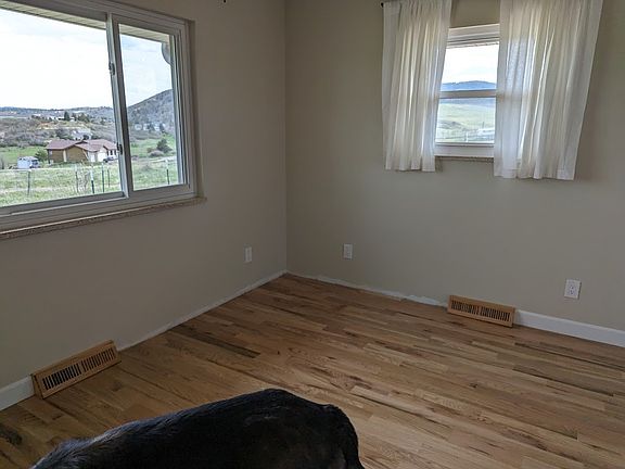 Lovely horse property close to metro Denver, remodeled ranch style home on 5 acres with oversized 2-car attached garage and 6 stall barn. Located just 5 miles from the town of Sedalia. Amazing views, quiet neighborhood, zoned for 4 horses. The entire 5 acres has a 4-foot-tall dog fence. Fantastic hiking and riding trails, to Roxborough State Park, The Pike National Forest as well as trails in and around the 900-acre neighborhood. Indian Creek Ranch (icria80135dotcom) boasts a clubhouse, miles of trails, 2 creeks, and a community riding arena. There are new hardwood floors, new countertops, newer refrigerator, open floorplan, 2 updated bathrooms, gated entry, keyless locks, fresh paint and lots of natural light. There is a lovely, warm, Kozy heat granite gas fireplace. Renter pays gas, electric, water, and rubbish. Additional depost and pet rent for horses, dogs, chickens, cats, rabbits, sheep, etc.