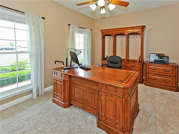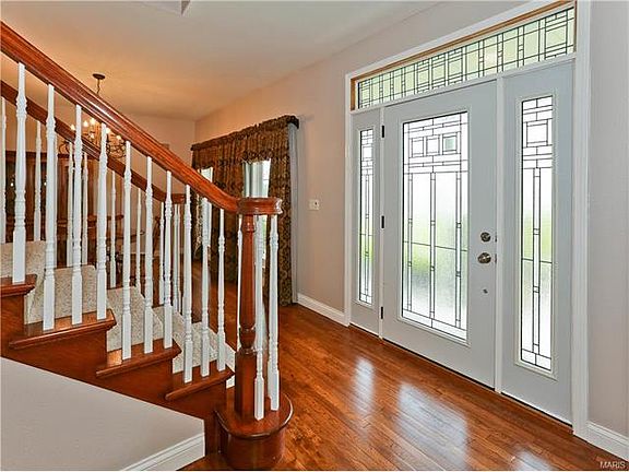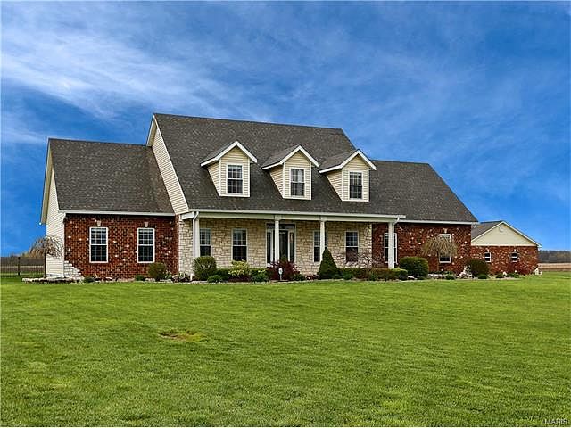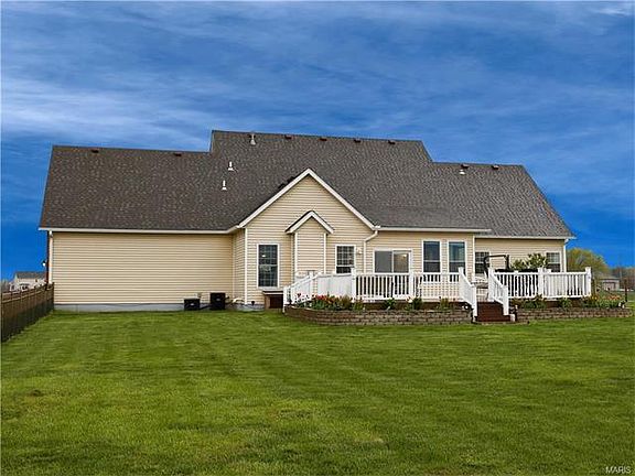 AMAZING HOME WITH OVER 5000 FINISHED SQ FT ON 2 ACRES IN THE TRIAD SCHOOL DISTRICT. You will fall in love as you notice all the upgrades like gleaming hardwood & custom molding. Gourmet kitchen with Stainless Appliances and Custom Cabinetry with Center Island & Walk-In Pantry overlooking the Hearth Room and Living Room. Main floor Master Suite with gorgeous master spa bath including whirlpool tub, oversized shower & walkin closet (designed by St. Louis Closet Co). The 2nd MF bdr is being used as an office with French doors. Entertaining is easy with the Sunroom & Party Deck. The upper level boasts two huge bedroom & full bathroom. You be amazed by the open feel with the balcony overlooking the main floor living area. The finished lower level features a huge family room, recreation room and bathroom. WOW! This home has both a 3 car oversized attached garage and a detached 3+ car garage. TONS OF UPGRADES! Fenced Flat Yard. NEAR SAFB. Call Today!