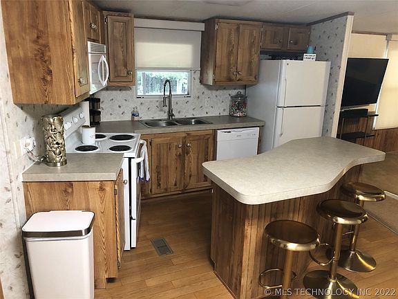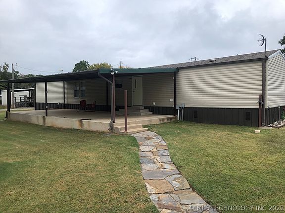 Nice, like new condition Clayton single wide on a great lot in Washita Point that backs up to the Corps. land. Home has 3 bedrooms-2 baths, open living area, covered front porch, covered back patio, nice steel shop building, fire pit and cellar. Home is fully furnished, and furniture stays with the home. There is lake access, boat ramps available and a swim beach nearby.