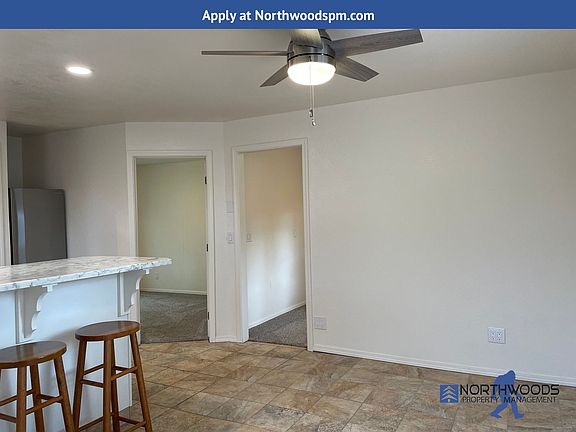 If the property is not listed on our website then the property is no longer available. _____________________ DESCRIPTION: This home has been renovated to give you the modern upgrades for comfortable living. There is a mini split to heat and cool the home. There is a raised breakfast counter to enjoy your meals and great for entertaining. The kitchen is equipped with brand new appliances to fit your cooking needs. Brand new kitchen cabinets. The bathroom has a custom tiled shower surround, new toilet, cabinets, floating vanity and modern lighting. One bedroom has a sliding barn door. One bedroom has a glass sliding door that will lead you out to the renovated detached heated laundry room with cabinets for storage and a clothes bar to hang your clothes. The landscaping is low maintenance. The yard is fully fenced for privacy. There is a covered patio area right off the bedroom. There is an additional patio on the side of the home. Great outdoor living space to enjoy our wonderful summers here in the valley. Come make this your home HOA: No SMOKING: No Smoking PETS: No Pets UTILITIES - Tenant Responsible for all utilities except: Water/sewer/trash/recycling Monthly Passthru charge- Utility/Sewer Approx. $00.00 LANDSCAPING: Tenant responsibility CONTRACT TYPE: Lease MINIMUM HOUSEHOLD INCOME REQUIRED (Gross) : $3585.00 SECURITY DEPOSIT: $1750.00 RENTERS INSURANCE REQUIRED: yes _____________________ Northwoods requires the full security deposit and rental agreement signed within 48hrs of approval of application. Failure to execute the contract and pay the deposit within 48 hours will result in the subject property being reactivated and advertised to locate another approved applicant. Application fee may be refundable if: 1. The application meets Northwoods minimum standards, 2. applicant views Property within 2 business days after application is submitted and 3. applicant contacts Northwoods to withdrawal application from consideration directly after viewing and requests refund.