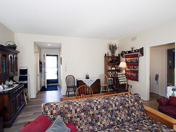 The 2-bedroom, 2-bath Hawthorne is one of the most popular models in the Village. Nestled in a horse-shoe configuration with another Hawthorne next door and two Winthrop models on each end, they form a little community of their own. 744B has a totally private and expansive back patio area. A grassy field stretches as far as the eye can see off the left side of the patio affording perfect privacy and beauty. Included in the photos is one of that field taken in the summer so potential buyers can appreciate the scope. It is now snow-covered. The Hawthorne is small enough to be cozy and perfect for those downsizing, but has ample room to spread out. BRAND NEW HEAT PUMP provides efficient heating and cooling. All ducts upgraded to energy efficient material An electric insert in the fireplace provides extra warmth and atmosphere in the colder winter months. The flooring is Luxury Vinyl Tile throughout (except the second bedroom which has laminate flooring). LVT is the newest of the wood-look floorings that is virtually impervious to moisture such as spills. Hot water heater is only one year old. The photos tell the story of what 744B offers, both inside and out. Oh, and by the way, slab work done! And, flat walk from closest end garage. 24 hour notice preferred for showings This one won't last! Please observe all CDC guidelines including masks and hand sanitizer or gloves. All buyers pay a one-time equity fee of $2,000 at closing to the Heritage Village Foundation.