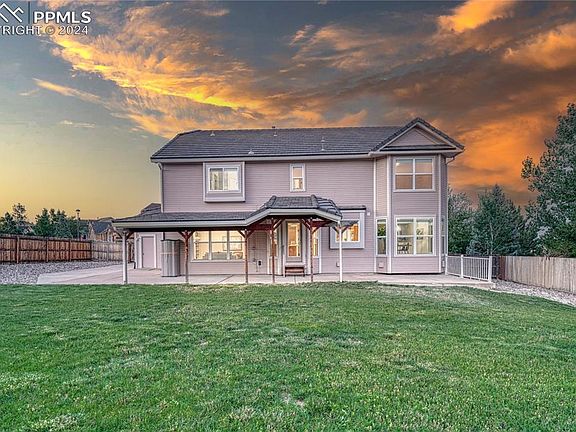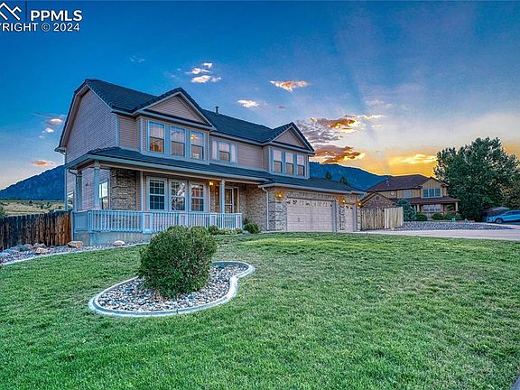 Fantastic 2-story on a rare and incredible lot with open space and unobstructed views of Cheyenne mountain. Land behind home cannot be built on so your views and privacy will never change. Great curb appeal on this 1/3 acre. Open floor plan w/ new paint, crown moulding, loads of natural light, hardwood floors, formal dining, fireplace, and built in. Kitchen features hardwood floors, oak cabinets, coffered ceiling, island, pantry, newer oven & built-in microwave, and canned lights. Huge master suite w/ high ceilings, sitting area, and multiple windows for natural light. Attached 5-piece bath double doors, jetted tub, double vanity, and large walk in closet. Finished basement w/ rec room, wet bar, huge storage room, and gas plumbing for a wood burning stove. Backyard is jaw dropping with the open space and mountain views, large yard, huge covered patio, gas line for grill or heater, and vegetable gardens. Central A/C. Hot Tub wiring. Radon mitigation system. Concrete tile roof. District 12 schools and walking distance to Pinon Valley Elementary and The Broadmoor Glen Park which includes a pool, tennis courts and playground.
