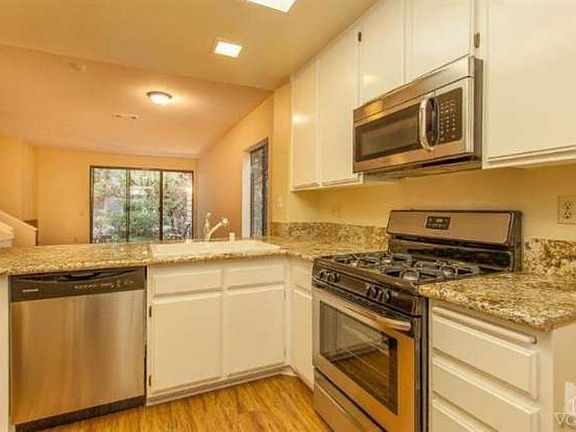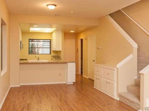 Updated Townhome with laminate flooring and granite counter tops in an open kitchen and living room area. Stainless Steel appliances include stove, microwave and refrigerator. New washer and dryer in unit. Large bedrooms with vaulted ceilings. Master includes a two closets; one is a walk in closet! Master bedroom also has a balcony over looking a tranquil back area with a stream running through. There is a constant sound of running water that makes for a very relaxing zen experience all day and night. Two Car garage that is directly in front of the unit. This is an end unit and only shares walls with one side. Amenities onsite include a pool area with jacuzzi. This Townhome is walking distance to the Vons Shopping Center & Restaurants off of Arniell Rd. To schedule a tour of the property please send an EMAIL or Text the given phone number Tentant responsible for utilities (Water, Gas & Electric)