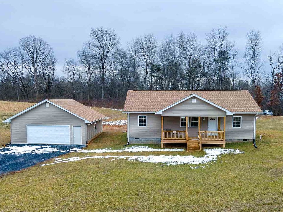 One floor living on over 6 acres in the country! This newly constructed three bedroom two bath rambler offers astounding country views and privacy while being conveniently located roughly a mile from Walmart and the Luray Caverns. This home offers a large eat-in kitchen with wooden cabinets and laminate countertops, walk-in closets for each of the three bedrooms, and a primary suite all on one floor. The large 28x28 detached 2 car garage offers ample room for storage or possible workshop space and has been prepped for electrical. The open, gently rolling land has great potential for entertaining guests or relaxing in peace and viewing the wildlife. Potential to further subdivide and build another property on the land.