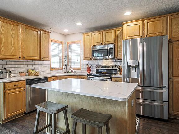 Well cared for 4 bedroom 4 bath home! features upgraded kitchen with quartz countertops, stainless steel appliances & tile backsplash. 2-story foyer, 3 bedrooms on one level, main floor laundry, vaulted master with private master bath & walk-in closet & newly finished walk-out lower level. Large deck, firepit, sport court & nicely landscaped yard. Must see. Pride in Ownership!