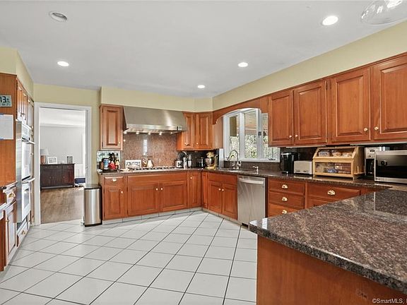 Welcome home to 745 Carter! A very special 5 bedroom and 3.5 bathroom colonial, situated on a quiet cul de sac. 4 Generous sized bedrooms will be found upstairs. The main bedroom has an en-suite bathroom with a tub and shower, double vanities, and a large walk-in closet. Ample built-ins! Another bathroom with double vanities on this floor. The main level boasts a large foyer with coat closets, 5 th bedroom(or Aupair or in-law suite/study) with en-suite bathroom. The large eat-in kitchen has a 6-burner Viking stovetop and double wall ovens. Both the family and living rooms have wood-burning fireplaces. On this level, you will also find the powder room, dining room, and laundry room. The enclosed porch is perfect for hot summer evenings or step down and enjoy sitting outside on the very private bluestone terrace, surrounded by lovely perennial plantings. EXCELLENT LOCATION!!!!! Close to town, schools, and Merrit parkway. New Roof in 2019 and new furnace in 2018 House is on a private lane, the road gets maintained by the 5 houses on the Cul-de-sac.