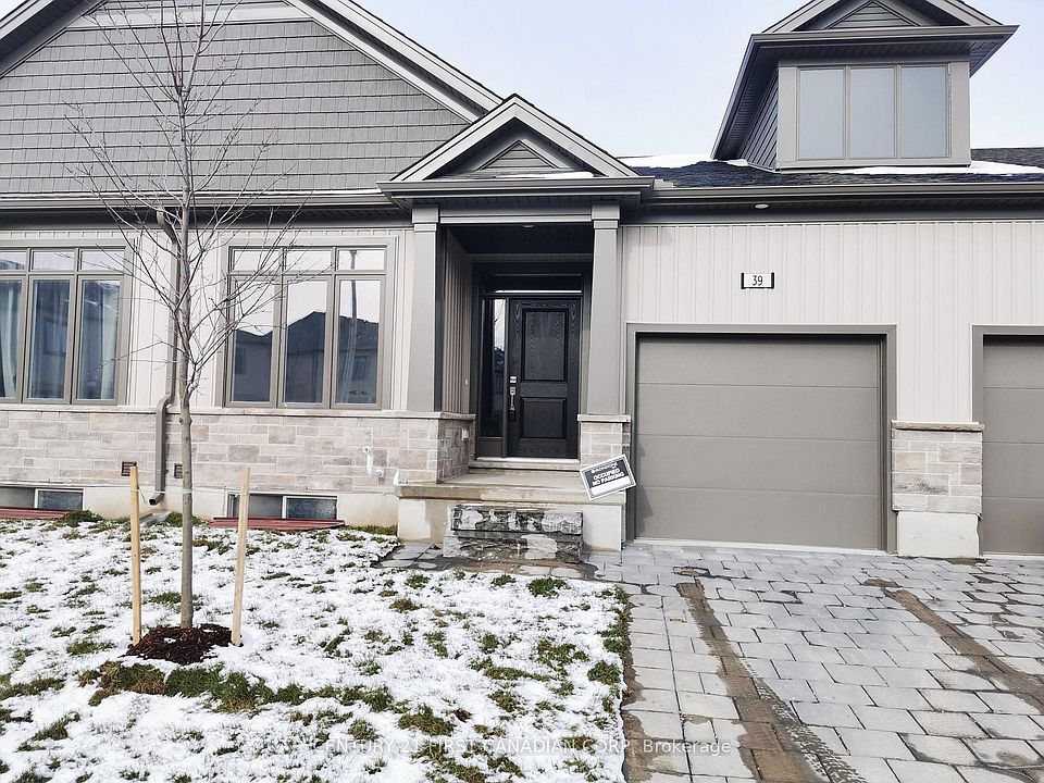 Welcome to this thoughtfully designed 2+1 bedroom, 3-bath bungalow-style townhome that combines the ease of single-storey living with the comfort of a fully finished basement. This home is perfect for those looking to downsize without compromise, retirees seeking convenience, or professionals who value low-maintenance living over climbing stairs. The main floor features a bright open-concept layout with hardwood floors, a modern kitchen with quartz counters, and a cozy dinette that flows into the spacious living area ideal for relaxing or entertaining. The primary suite includes a walk-in closet and private 3-piece ensuite, while a second bedroom and full bath provide flexibility for family or guests. Downstairs, a large rec room, third bedroom, and another full bath create the perfect retreat for visiting family, a home office, or hobbies. With an attached garage and quality finishes, this home offers a blend of style and function. Located minutes from Hwy 401, schools, parks, and shopping, it delivers the lock-and-leave lifestyle of a condo with the space and privacy of a home.