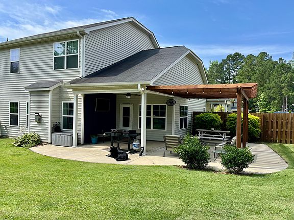 Great Community Swimming Pool and Pavilion! Plus a large green space across the street to play with friends. This beautiful cottage style home with 4 Bedrooms and 2.5 Baths is for those families who wish the MASTER ON THE 1ST FLOOR with 3 BEDROOMS ON THE 2ND FLOOR, EACH with a WIC, plus a MEDIA ROOM. The MASTER BEDROOM includes Double Sinks, Garden Tub, Separate Shower, and WIC. On the Main Floor spend time together in the OPEN FLOOR PLAN where the KITCHEN is contiguous to the Great Room, boasts a Breakfast Area as well as a Breakfast Bar, and is next door to the Formal Dining Room. A MUD ROOM off the 2 CAR GARAGE houses the Washer/Dryer, Utility Closet & a Coat closet. Easy 20 minute drive to Ft Bragg and only 12 minutes to Southern Pines shopping! It is closer to downtown Southern Pines than living in Whispering Pines and Pinehurst! This house has an added attic space for extra storage, a great pergola and spacious patio, plus a retaining wall with an added patio on top. Perfect for outdoor loving families! Storage shed stays with the property! Backyard completely fenced! Pets ok with approval and pet deposit. Available July 15. 12 month lease. Renter pays utilities and agrees to maintain home per HOA policies. No smoking.
