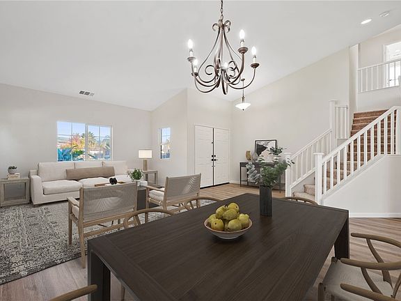 Beautiful two story POOL AND SPA home in the city of Hemet with an amazing floor plan!! This home features four bedrooms and three baths on a good size lot 8,712, sqft.. This home has a family room with a cozy fireplace and lots of natural lighting. There is one bed and full bath downstairs. Some upgrades have been done including NEW laminate floor throughout, NEW ceiling fans, NEW carpet in the bedrooms and stairs, nice paint kitchen cabinet with NEW Quartz countertops, all NEW stainless-steel appliances, sink, recessed lighting, New fixtures,, New interior paint. This home has a family room with a cozy fireplace and lots of natural lighting. That's not all, this home has a nice backyard with a beautiful swimming pool to relax, entertain guests, and host family barbecues; perfect for the summer. Beautiful landscaping in the front and back yard. Attached two car garage. This home located near schools, shopping, dining, golfing.. This home will not last!