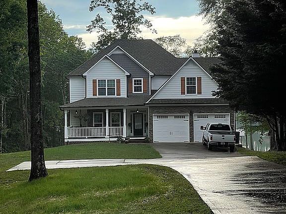 Lake view from all 3 stories. Main floor has a living area with new fire logs and a screen porch, kitchen, new walk in pantry, breakfast nook and a formal dinning room. The kitchen has been remodeled with granite countertops and custom backsplash matching the pantry. The upstairs has 5 bedrooms, 2 full baths and a laundry room. The main suite has a joining sunroom and deck. All bedroom floors and bathrooms have new hardwood. Two bedrooms have French doors opening to the new remodeled balcony facing the lake. The main level and upstairs have all new painted walls. The third level ground is mostly finished. Two bedrooms could be finished to make 7 bedrooms. There is a full patio on the ground level with a private hot spa. The boathouse has 2 boat slips and 2 jet ski lifts. The exterior was painted recently. The sunsets are beautiful.