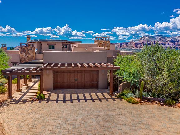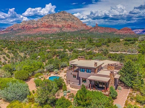 Stunning Views, Exquisite Southwest HomeFew places in Sedona offer this expansive view of both sunrise and sunset while looking out over the surrounding National Forest featuring Thunder Mountain, Bear Mountain, Doe Mesa, Cockscomb, Chimney Rock and Seven Canyons. Enjoy early morning tea on the rear patio overlooking the pool below and the hot air balloons drifting by above. In the evening, unobstructed dark skies offer spectacular star gazing as you sip a glass of wine. This is your private special retreat, breathtaking by day and magical at night. Easy access to local trails, too. The owners' goal was to bring the fabulous views of the outside inside. This meticulously maintained custom built Southwest home offers unique details at every turn - from the inlaid decorative tiles and