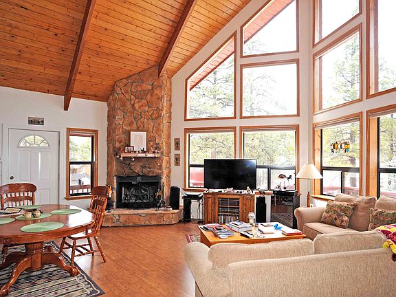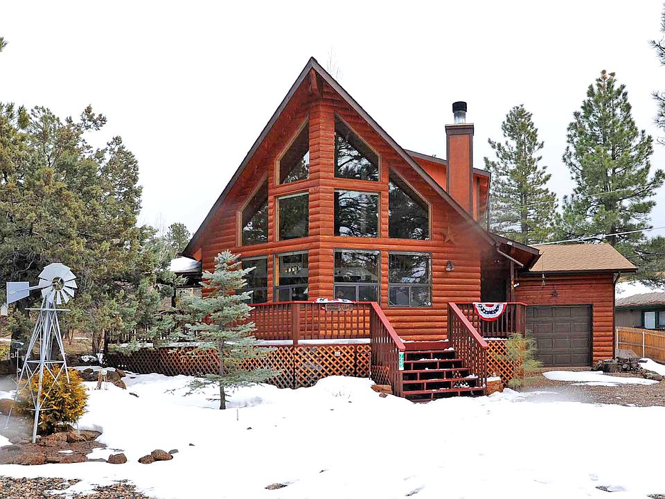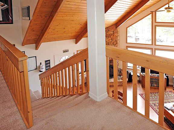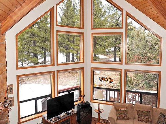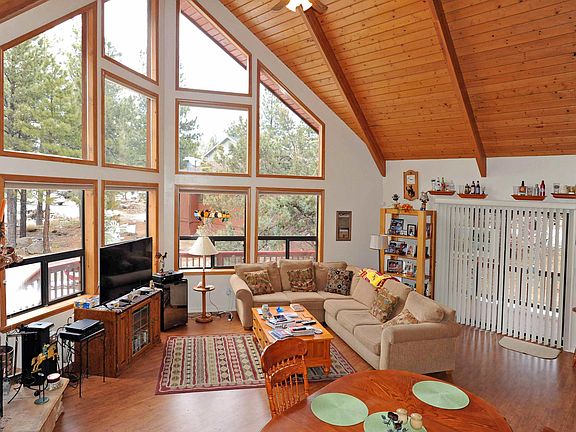 Charming A-frame cabin in the woods that's perfect for year-round living or a weekend getaway! As you approach the home you are greeted by a wrap around deck that is the ideal spot to relax or entertain. Inside you'll find a spectacular great room complete with vaulted wood ceilings, floor to ceiling windows, and a cozy wood fireplace. The main floor also offers 2 bedrooms, a bathroom, and laundry. Upstairs opens up into a spacious loft including a deck, large bathroom, and closet. The home is complemented by an oversized, single car, attached garage. Don't miss this incredible opportunity, schedule a private tour today!