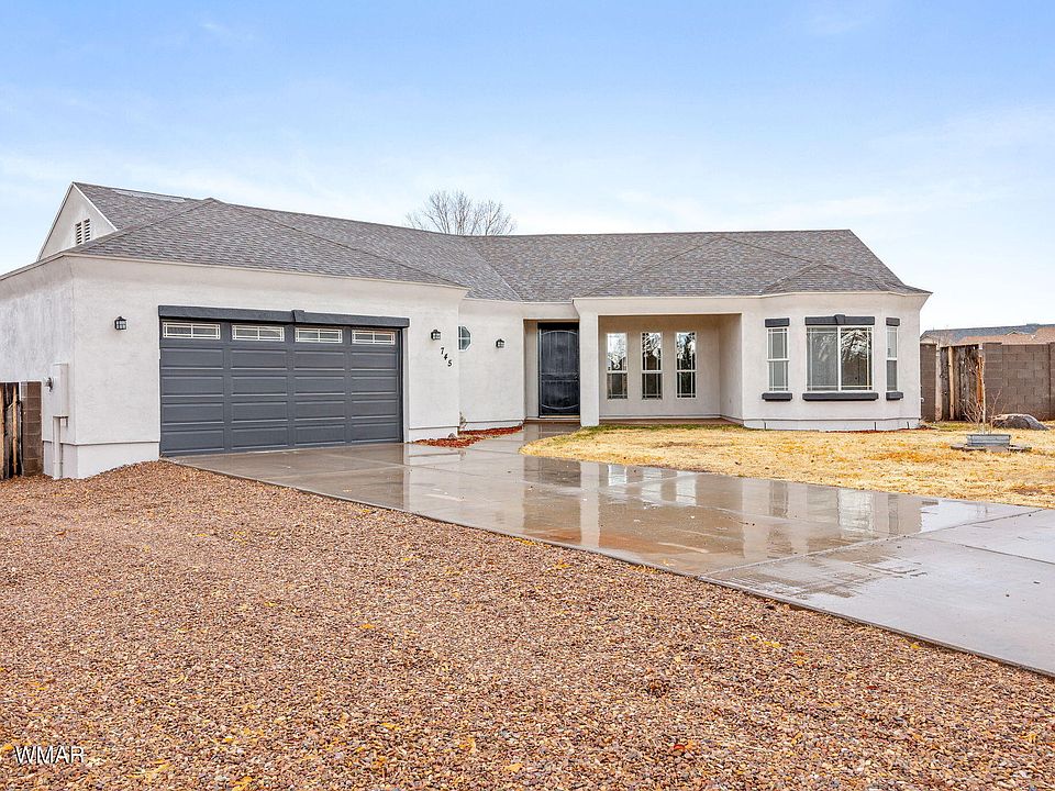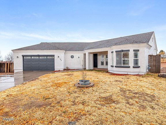 Discover the charm and elegance of 745 Jasper Circle in Taylor, AZ, a beautifully renovated residence set on a spacious 15,689 sqft cul-de-sac lot. This 1,728 sqft home is a perfect blend of comfort and modernity, offering three bedrooms and two bathrooms along with a convenient two-car garage. The heart of this home is its kitchen, a culinary delight with new stainless steel appliances, a large island adorned with striking quartz countertops, and chic white shaker cabinets complemented by recessed can lighting. The living areas are graced with new wood-look laminate flooring, combining durability with a stylish aesthetic. Comfort is key in the cozy bedrooms, each featuring new carpeting for a warm, inviting ambiance. Every detail has been thoughtfully considered, including the updated brushed nickel fixtures throughout the home. The expansive backyard presents a vast canvas for outdoor activities or tranquil relaxation, making it an ideal space for both entertainment and serenity. This property is not just a house, but a beautifully crafted home ready to create new memories.