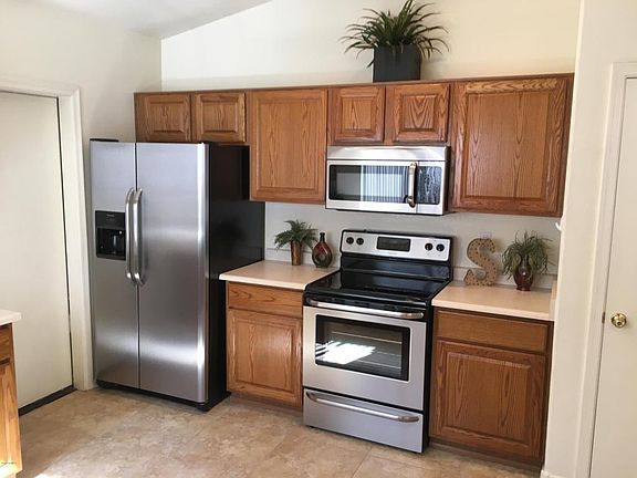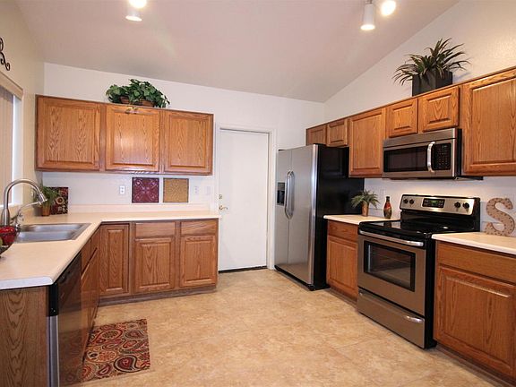 GREAT PROPERTY. JUST DOWN THE STREET FROM A LARGE PARK WITH CHILDREN'S PLAY AREA, BASKETBALL COURT, AND LARGE GRASSY AREA. 3BED/2BATH 2 CAR GARAGE, PORCELAN TILE THRU-OUT KITCHEN, GREAT ROOM, DINING ROOM, HALLWAY & HALL BATH, CARPET JUST INSTALLED IN BEDROOMS. TONS OF CABINETS IN GARAGE FOR STORAGE, INSIDE LAUNDRY. SPACIOUS GREAT ROOM WITH VIEWS OF GAZEBO IN BACKYARD, CEILING FANS, LARGE COVERED PATIO. OPEN KITCHEN AND DEN JUST OFF GREAT ROOM. MASTER BATH HAS SEPARATE TUB & SHOWER AND DUAL SINKS. NORTH/SOUTH EXPOSURE W/ DUAL PANE WINDOWS. STAINLESS APPLIANCES RECENTLY INSTALLED