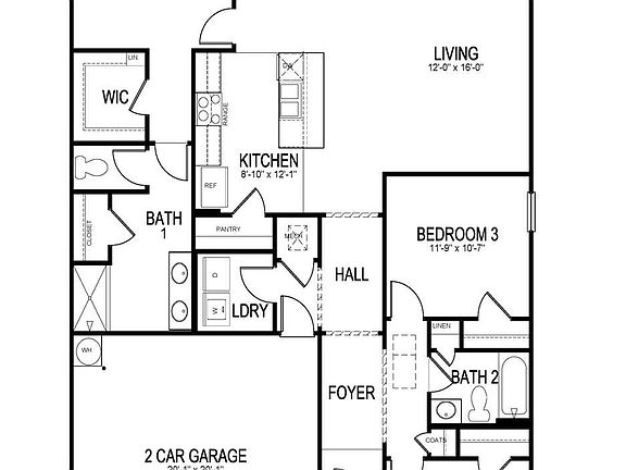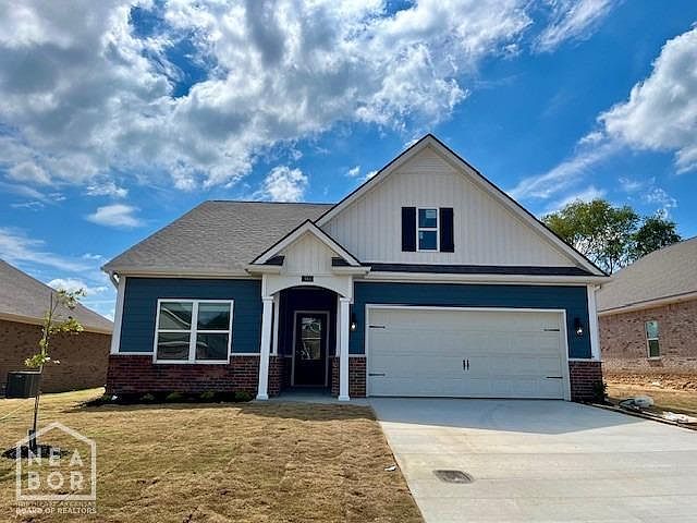 This appealing one-story home includes many contemporary features, and an open-concept design and 9' ceilings enhance the wonderful feel of this home. The kitchen includes a large island perfect for bar-style eating or entertaining, a pantry, and plenty of cabinets and counter space. The dining room and living room both overlook the covered porch, which is a great area for relaxing and dining al fresco. The large Bedroom One, located at the back of the home for privacy, can comfortably fit a king size bed, and includes an en suite bathroom with double vanity, walk-in closet, and separate linen closet. At the front of the home, two bedrooms share a second bathroom. The two-car garage connects to the front hallway where the laundry room is located. Pictures, photographs, colors, features, and sizes are for illustration purposes only and will vary from the homes as built. More Home Features Include: All granite countertops, all kitchen appliances, gutters, blinds, walk in shower, covered back patio, and smart home system.