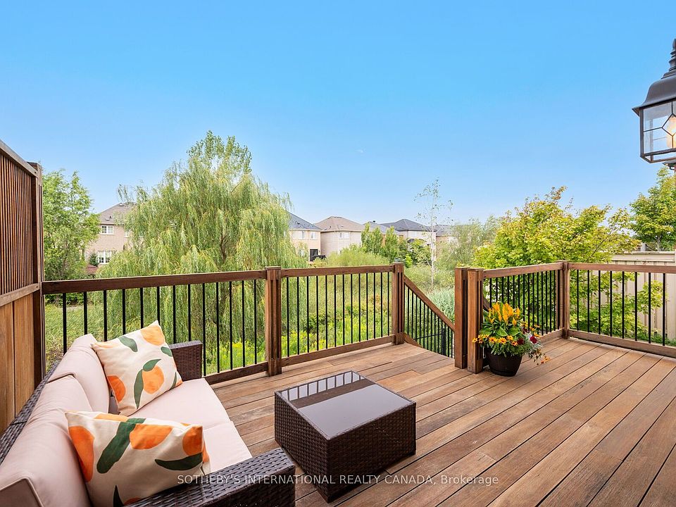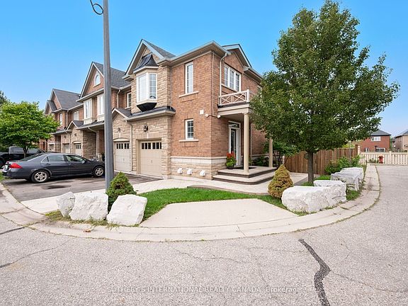Fabulous on Farmstead! Located in the desirable Willmott neighbourhood of Milton, Unit 21 is a beautifully landscaped corner lot, end-unit townhome that backs on to tranquil green space. Take a few steps into this home and be wowed by all the natural light that pours in from its many windows & French doors. On the main floor the 9 Ft ceilings, warm hardwood floors, crisp white walls and pot lights add to its bright & airy feel. Your open concept living area has distinct zones for cooking, dining & unwinding. A modern kitchen which features a breakfast bar, double sink, ample cabinet & counter space, full sized stainless steel appliances & granite countertops. Open up those French doors (Yes! Both open to let in all that fresh air) and walk out on to your extended deck that offers stunning views of the ravine & a lovely willow tree. It's also equipped with a motorized awning for those extra sunny days plus stairs that bring you down to your stamped concrete patio, which wraps around the exterior of the home. Exterior pot lights illuminate the home from all angles. Both deck and patio have gas lines for the BBQ aficionados! You'll also find a two piece powder room on the main floor as well as access to your attached garage. Head upstairs and you'll find three spacious bedrooms, as well as two full bathrooms and two linen closets. The primary bedroom is a true retreat with separate sitting area, two large windows, a walk-in closet and four piece ensuite bathroom with a soaker tub and separate shower. The lower level is a finished walkout basement that is as stunning as it is versatile. The open concept space can be used as a recreation room, home office, home gym & so much more, with a sleek full bathroom (Yes, that's a total of four bathrooms!), stacked Electrolux full size washer & dryer and laundry sink - plus the second set of French doors lead you out into the backyard. This home has parking for three cars and additional visitor parking in the area.