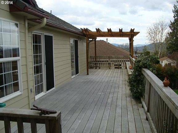 Custom built home with lots of upgrades, 40 year roof, leaf guard gutter system, plumbed for central vac, central air conditioning, trek decking front and back, oversized insulated 2 car garage, with floored storage and a pull down stair above the garage and storage under the house. Corian Counter tops