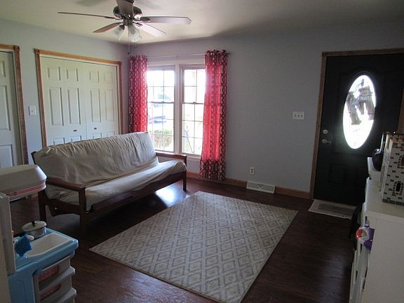 Comfortable home with .91 acres and an outbuilding! This well maintained home features a large living room/ master suite addition in 2000 complete with oak trim. There is also a family room with a full wall of closet space. The kitchen is a nice size and opens to the dining room. Newer laminate flooring installed a few years ago in the living room, family room and hall. The attached garage has plenty of storage space too. The backyard has a 25 x 21 patio and a vinyl fence. The 26 x 26 pole barn has a concrete floor and provides a great outdoor storage area. Plenty of room to roam on this .91 acre lot with a country setting. Includes: Refrigerator, range/oven, dishwasher, microwave, washer, dryer, all window treatments and the flagpole. Excludes playset and freezer. Seller is providing an HMS Home Warranty for the Buyer.