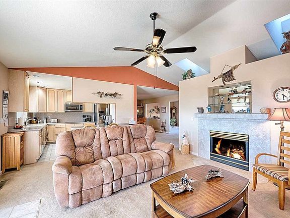 Fresh air, beautiful views and 10 acres of peace and quiet are all yours with this East Spanish Springs view property. All lovingly cared for by original owners. 4bdrm, 3 bath and oversized 3 car garage. Remodeled kitchen with solid surface countertops, newer cabinets and breakfast bar that opens to the family room with gas log fireplace and slider access to the back patio. Solar electr. Water softener, barn that could be converted to a studio or ? Dog run. Picket fence in front and fenced back patio area.